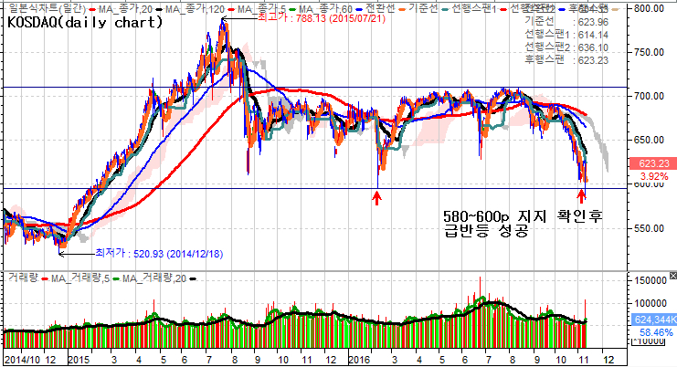 슈퍼정보[필자]의 분석으로는 코스닥지수 기준 580~600구간은 단기.중기 큰 바닥권으로 보아
