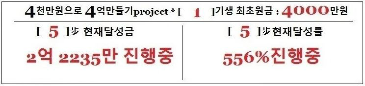 4천만원으로 4억만들기project 1기생 1步,2步,3步,4步,5步의 자세한 상황은 여기를 클릭링크