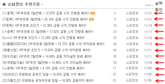 [슈퍼정보]VIP방송 단기 추천주 실적 공개 (기간 : 2016년 11월8일~21일)