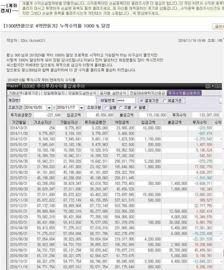 [4천만원으로 4억만들기project]단순명료 성공투자기법-[심리편]-성공하는 투자자가 갖춰야할 기본심리 성공하는 투자자가 갖춰야할 기본심리엔 대표적으로 4가지가 있다 첫번째는 가격에 의거한 기계적 손절을 하지 말아야 하는것이며 두번째는 대응을 손절이라는 개념으로 받아들이는것과 세번째는 불가능한 영역은 빨리 인정하는것과 네번째는 심리의 통제를 위해 대박나는 계좌의 패턴은 어떤것인가를 알아야 한다. 왜? 이것이 중요한가요? 여기에 답을 하기 어렵나요? 극히 당연하지 않은가요 ? 돈 벌려는데 자신의 심리도 통제못하는 사람이 돈을 버는 그런경우는 없는겁니다.그렇게 생각하시면 주식시장에서 개나소나 다 돈을 벌어야 하는데 역사적으로 백만명에 몇만명빼고는 다 돈을 잃고 울고불고하면서 갔다 이겁니다. 그 몇만명은 누군지 궁금하시죠? 그사람들 이름은 저도 잘 몰라서 패~스.그래도 몇명은 있습니다 .미래에셋의 박현주회장,주식농부,평택촌놈..흠 욕같은데 평택촌님으로 .. 등 그냥 신문에 난 몇몇사람외 좀 있겠지만 그외 95%의 사람들은 종자돈 다 탈탈탈 탈곡기에 털리고 주식시장을 욕하고 그러겠지요?그런데 그건 당연한겁니다.? 손자가 밥먹고 할일없어 지피지기면 백전백승이라는 이야기를 한게 아닙니다.자기를 알고 적을 알면 백전백승이나 자기도 모르고 적도 모르는 사람들이 전쟁터보다 더 위험하다는 위험자산에서 자신이 뭘 사는지도 모르고 사고 팔고를 하는데 어찌 이겨낼수 있을까요? 그럼 성공투자를 위해서는 뭐부터 해야할까요? 바로 자신의 심리부터 재정비해보자 이겁니다.위에서 기본심리의 첫번째가 뭡니까 ? 첫번째가 손절을 하는것을 사랑하는 연인의 피눈물이라고 생각해야 합니다.어때요 여러분은 아내가 피눈물을 흘리는걸 좋아합니까? 엥? 좋다고요..흠 질문을 잘못한듯..그러네 내 입장에서 생각해봐도 그건 그럴수도 !!! 아무튼 아내가 안보는 공간이라고 좋다고 웃지마시고요.손절은 절대 미학이라든가,이런게 아닌 그저 계좌라는 이름의 연인을 괴롭혀서 나는 피눈물입니다.더이상도 더이하도 아닙니다.손절을 미학이라며 아름답게 꾸미면 그걸 예술행위마냥 반드시 해야하는것처럼 생각하시는 분들이 많은데 절대 안됩니다. 그러나 여기서 말하는 손절은 절대 하면 안된다고 하는 말은 분명 가격의 하락으로 인한 자동손절을 말함이지 무조건적으로 손절은 안돼,라는것은 아닙니다. 연인과의 피눈물도 피눈물이지만 어쩔수없는 경우도 있긴있습니다.사랑하기에 헤어진다? 뭐 이런개념은 아니고요.단지 가격의 하락으로 인한 기계적손절을 말합니다..가격의 하락으로 자꾸 팬다? 그럼 계좌라는 미인은 떠나지 않겠습니까? 시장상황의 변화와 종목의 돌발악재등의 손절은..잠시 인생을 살면서 힘든 시기에 잠시 헤어졌다 다시 만나면 되는거 아니겠습니까.. 계좌라는 미인을 옆에 두고 밥못한다고 패고 청소안했다고 패고 그렇게 툭하면 두들겨 패서 헤어지면 계좌는 다신 여러분을 안보고 싶겠지만 IMF를 만나서 혹은 금융위기로 인해서 일시적으로 눈물어린 헤어짐은 결국 다시 내 품으로 돌아오기 마련입니다. 그럼 손절은 언제하느냐? 그것은 시장의 돌발악재와 종목의 돌발악재, 아니면 홀딩중 바뀔수있는 시장자체의 변화 등으로 하는 손절은 피눈물을 흘리면서 할수밖에 없는 상황에 올수는 있습니다. 그럼 이런 생각이 드실겁니다.손절안하고 버티다가 수년을 피눈물 흘릴때도 있는데.라고 생각하시겟지요.바로 그겁니다.제가 여러분에게 말씀드리고 싶은게 바로 그겁니다. 손절을 안할수있는 상황에 있는 종목을 매수해야 한다고 앞글 1탄[종합편]에서 뭘 사야 손절을 안할수있는 종목을 사는게 되지요 ??? 잘모르시겠다고요? 흠..공부합시다. 바로 이런 자리에 있는 종목을 사자 이겁니다.이걸 사면 여러분들이 매수한뒤 내릴경우 대응이라는게 꼬옥 손절이 아님을 알게 됩니다.그럼 이거 말고 여러분들은 어떤 종목을 매수했기에 몇년간 고생했냐고 묻는분을 위해 다음 그림을 한번더 봅시다. 바로 이런 자리에 있는 종목을 매수했기 때문이다 이겁니다.이 그림하고 위에 그림하고 뭐가 다르냐고요? 240일선의 하락각이 완화되지않았는데 매수했다 이겁니다. 240선안에는 1년동안 거래한 사람들의 무거운 마음이 있는데 하락각이 진행된다는것은 결국 손해본 사람들이 가득 있다는 이야기 아닙니까?그래도 그렇지 조금 올랐다고 손해봤는데 왜 팔지? 그럼 여러분은 왜 팔지요? 무섭기 때문이잖습니까?.그럼 다음 그림을 한번더 봅시다. 대다수의 투자자들은60일 이평선이 횡보각으로 변하고 20일선이 받쳐주면 바닥인줄 안다 이거지.그러나 여기서 240일선을 삽입해보면 그게 절대 아니다 이겁니다.240일선을 넣고 보시면 1번과 2번이 뭐가 다르지요? 네 240일선이 다른겁니다.240일선의 하락각이 저렇게 내려오는 1번은 60일선과 240일선의 확산후 수렴이후 재하락..의 경우인데 이경우는 들어가면 저점을 붕괴하고 다시 빠진다 이런말입니다. 어라? 손절은 연인의 피눈물이다 그러면서 갑자기 이런 이야기가 왜 나오지? 궁금하죠.당연히 하는 이유가 있