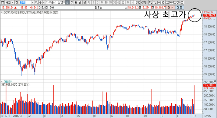 어제 이탈리아의 헌법개정 국민투표가 부결 되면서, 영국에 이어 이탈리아까지 유럽연합에서 탈퇴하는 것 아니냐는 우려에 하락을 했던 코스피는, 밤사이 미국 증시가 사상 최고가를 또 다시 경신한데 힘입어 오늘은 상승 마감을 했습니다.