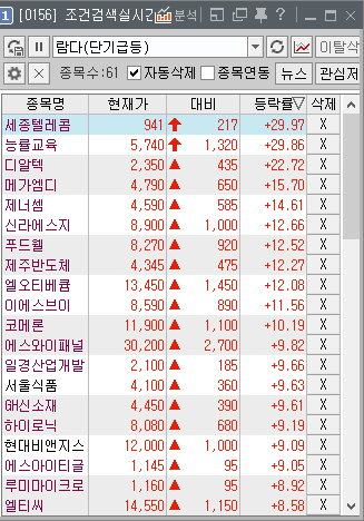 시장의 급등주들을 4가지 테마별로 분류해서 포착하는 알파벳 검색기와 함께 앞으로의 시장을 준비 하시기 바랍니다.