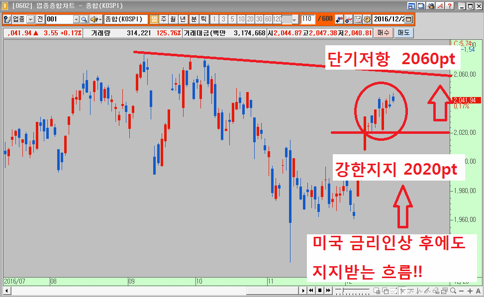 현재 코스피 시장은 미국의 금리인상에도 불구하고 2020 포인트를 강하게 지켜주는 흐름을 보이고 있습니다.