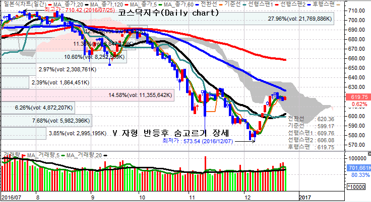 구간으로 설정 드린바 있다. 그리고 그후 코스닥지수는 12월19일까지 강한 반등세를 보인후