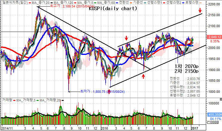 며 2016년 이후의 상승 채널을 감안한다면 그 다음 상승가능 지수대는 2150p 전후까지 상방으로