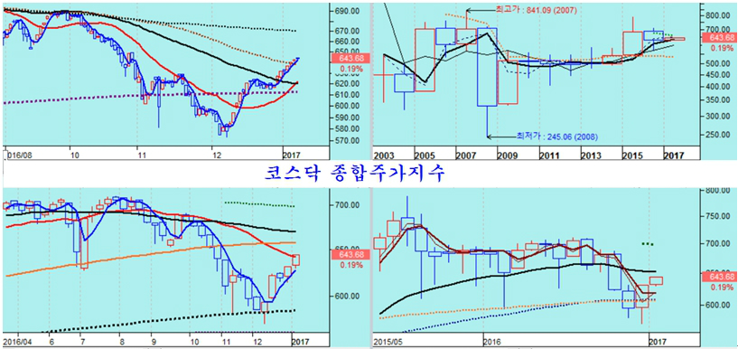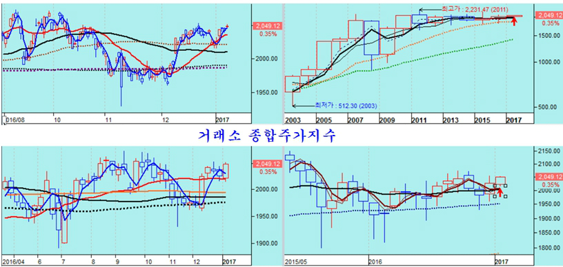 2017년 새해를 여는 주식 시장은 상승으로 출발하였다. 종합주가지수는 새해 첫주 1.12%가 올랐고 지난해 하반기 하락이 깊었던 코스닥 지수는 1.94%가 오르며 4주째 상승을 이어가고 있다.