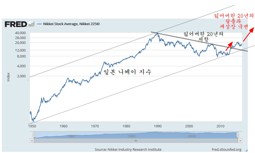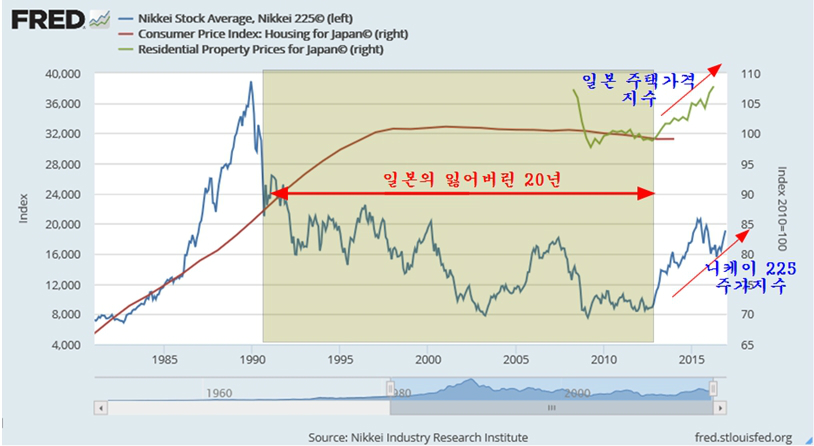 이제 일본은 완전히 잃어버린 20년을 벗어나 새로운 성장 국면으로 진입하고 있다. 적어도 주택가격과 주가 만큼은 이런 흐름을 보여주고 있다.