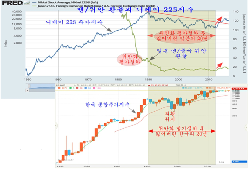 위안화 하락으로 잃어버린 20년의 저성장 국면으로 진입을 하였다면, 향후 위안화 상승의 시대에는 일본과 한국이 함께 저성장 터널에서 빠져 나와 다시 과거의 성장력을 회복할 때이다.