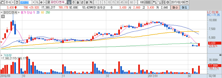 최근 문재인 전 대표를 비롯한 대선주자들이 4차 산업혁명과 관련한 정책을 언급하자, 1년 가까이 지난 이슈가 이제서야 주목을 받으며 바닥 뚫고 지하실로 내려가던 주가를 끌어올려, 하루 아침에 정치 인맥주에서 정부 정책주로 변신을 했습니다.