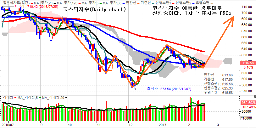 코스닥지수가 600~610선 전후에서 지지력 확인후 MA20.60을 동시에 돌파후 연이틀