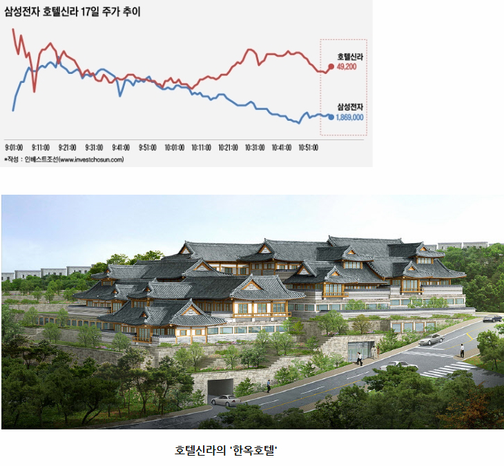 이 부회장 구속의 여파는 의외의 곳에서 나왔던 것이죠. 이부진 호텔신라 대표의 역할론이 부각되며 호텔신라 주가가 상승세를 나타낸 것입니다. 특히 호텔신라 우선주는 장 초반 급등세를 보이며 상한가로 가격제한폭까지 올랐습니다.