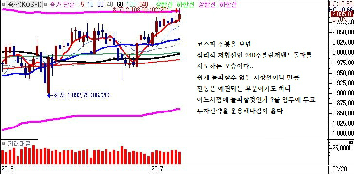 240주 볼린저밴드의 저항,240일 볼린저밴드의 저항이 복합적으로 작용하는 모습이다.