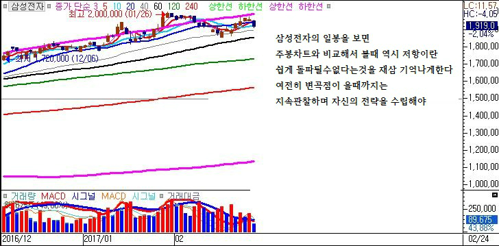 코스피의 주봉,일봉흐름과 삼성전자,sk하이닉스의 주봉,일봉흐름을 보면
