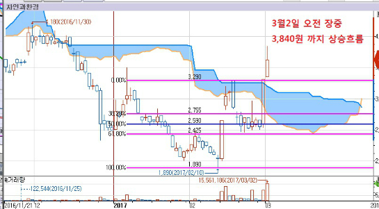 3월 2일 오전장 장중3,840원 까지 추가 상승 흐름을 보여줬다.