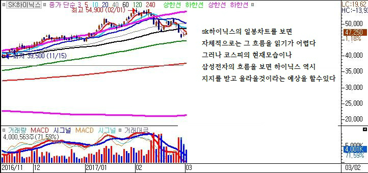 코스피의 흐름은 결국 삼성전자와 sk하이닉스의 움직임을 같이 놓고 봐야하며