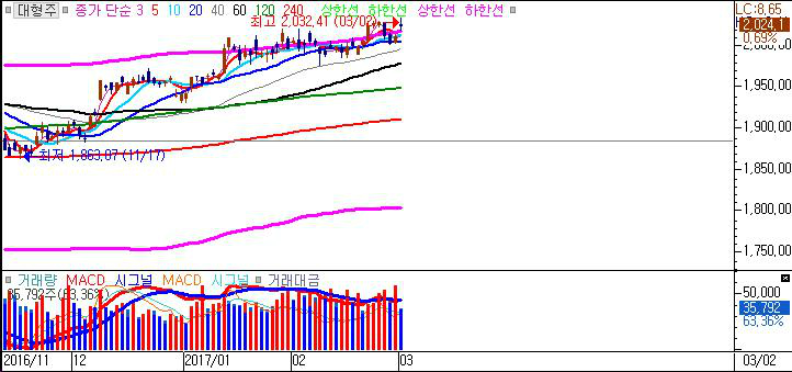 고래는 연못에서 살지못한다는 이치처럼 주식시장으로 큰돈이 들어올 조짐이 나타나며 이는 곧 대형주 업종지수의 강세로 나타나고 있다.