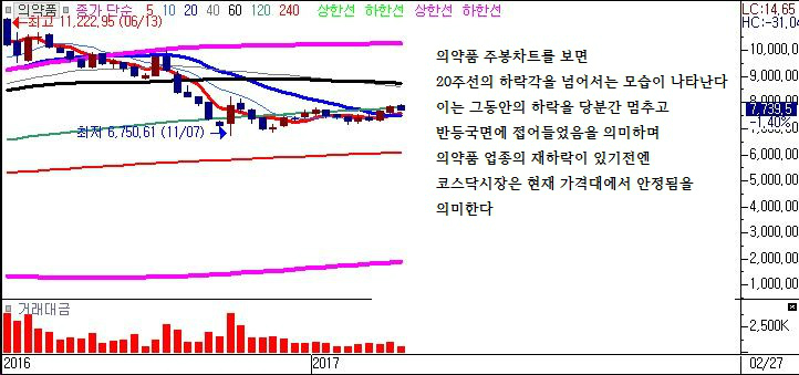 코스닥 흐름을 읽어보기 위해선 의약품업종의 흐름과 소형주 업종흐름이 필요하다