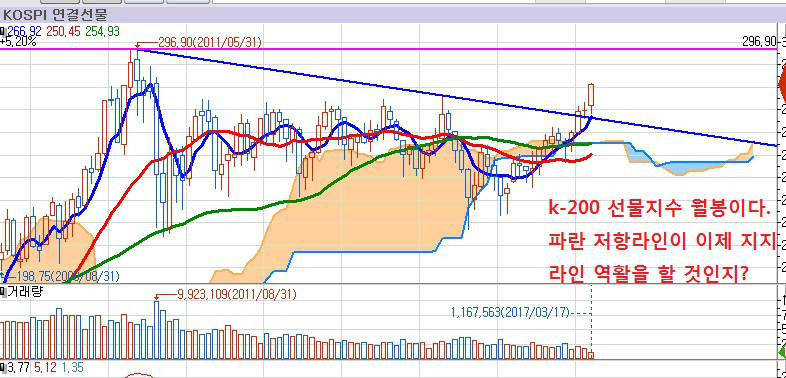[그림.1] k-200 선물지수 월봉