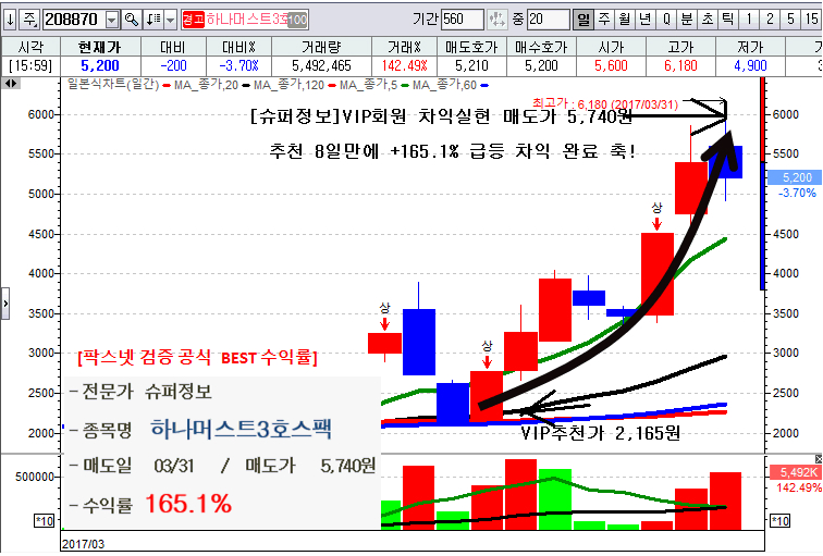 코스닥지수(일봉) - 반등 추세 지속 中 ![]() 코스닥지수는 상방 전환 이후 장.단기 이평이 수렴하고 있고 MA20, 60 골든크로스에 이어 MA60,120 골든크로스가 발생 가능성이 높아지고 있다. 그동안의 침체국면에서 상승추세로 전환하는 발판을 만들고 있다고 보아야한다. 따라서 기술적으로는 지난 분석글에서 제시한 " 1차적으로 645p 까지의 반등 가능성이 열리게 되었으며 2차적으로는 채널 구도상 680p까지의 추가적인 상승 가능성도 열리게 되었다. 따라서 일단 본격적인 강세장의 흐름은 아니지만 추가적인 상승 가능성을 염두에둔 다소 공격적인 베팅이 필요한 시점이다. 종목대응전략은 코스닥시장과 중소형주에 집중화는 매매전략이 필요한 시점이다. 최근 코스닥지수가 코스피지수에 비하여 상대적인 강세를 유지하는 이유는 다름아닌 기관과 외국인의 수급개선이다. 따라서 수급이 개선되는 상황이 이어진다면 코스피지수와의 갭 메꾸기 장세가 이어질 가능성이 높다. 일단 지수가 안정적인 상승추세를 나타내게 되면 종목별로는 시세의 연속성이 나타나게 되여 이는 곧 대시세로 이어지는 경향을 보인다. 따라서 현 시점에서는 단기 100% 급등예상주와 중기적으로 200~300%의 대시세가 예상되는 종목 발굴후 집중 베팅에 나설 필요가 있다. [슈퍼정보]방송은 항상 시황에 최적화된 베팅 전략을 구사하고 있으며 꾸준하게 급등수익을 드리고 있다. 최근 [슈퍼정보]VIP방송에서는 이화공영 +85%↗ 단기 급등 수익에 이어 [하나...3]의 경우에는 VIP추천후 8일만에 +165.10%↗ 의 급등 수익으로 차익 실현에 성공하였으며 [하나***4] 의 경우에도 추천후 9일만에 +79.10%↗의 급등 수익으로 차익실현한바 있다. 현재 포트폴리오 재편중이며 이번 대시세 랠리에 반드시 동참 하시기 바랍니다 [슈퍼정보] VIP추천후 단 8일만에 +165.1%↗ 차익실현에 성공한 [하나머****] ![]() 급등 대시세를 원하시는 분이라면 [슈퍼정보] VIP방송을 반드시 체험하시길 바랍니다. [슈퍼정보]VIP방송 1개월 가입비 : 55만원( 초 파격가로 진행중) [슈퍼정보]VIP문자 1개월 가입비 : 44만원( 초 초 파격가로 진행중) 가입을 서둘러 주세요! >>> [슈퍼정보]의 주도주. 급등주 선취매 전문 대한민국 1등방송 가입하러가기