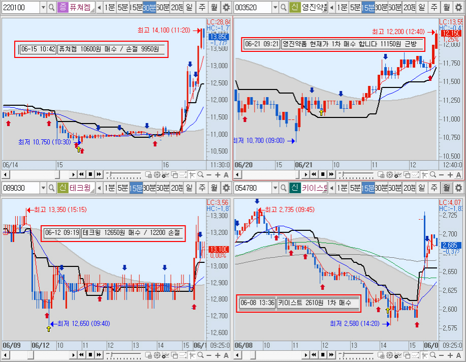 참고로 동성화학과 퓨쳐켐은 몇 틱 오차로 현재가로 잡지 않은 분들은 진입하지 못하였습니다.