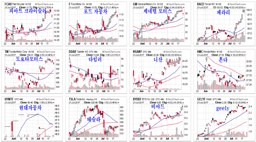쥬라기: 최근 세계 자동차 기업의 주가 움직임입니다.
