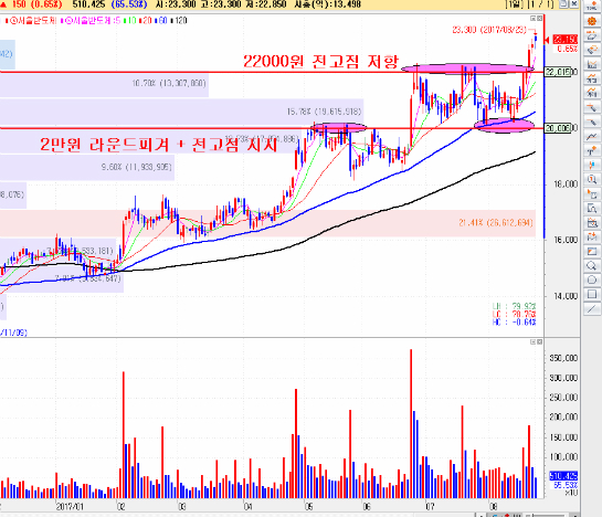 주가는 전의 저점과 전의고점만으로도 지지 저항의 역활이된다.