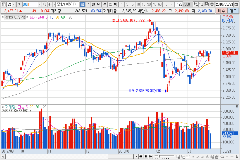 전일 상승했던 흐름에 추가적인 상승에 약간의 부담을 느끼고 있기 때문으로 보입니다.