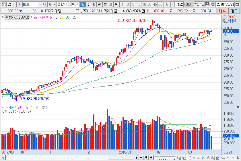 시장지수로 보면 초반 예상보다는 더욱 강하게 올라서며 895pt선까지 상승했지만, 차익실현 매도가 나오면서 보합수준에 머물고 있습니다.