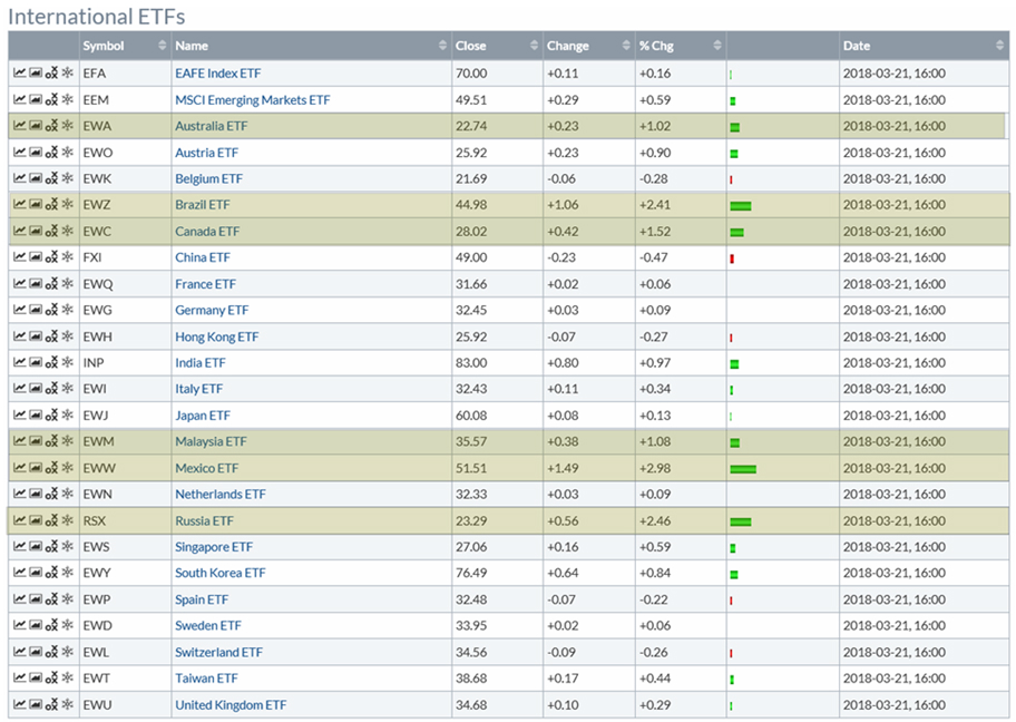 광산업와 유전업이 발달한 영국, 호주, 캐나다와 러시아, 브라질, 멕시코, 말레이시아, 금광업이 발달한 남아프리카 공화국의 인덱스 펀드가 상대적으로 상승이 강한 모습을 보이고 있고, 이들 나라의 환율도 여타 국가에 비교해 강한 모습이 나타났다.
