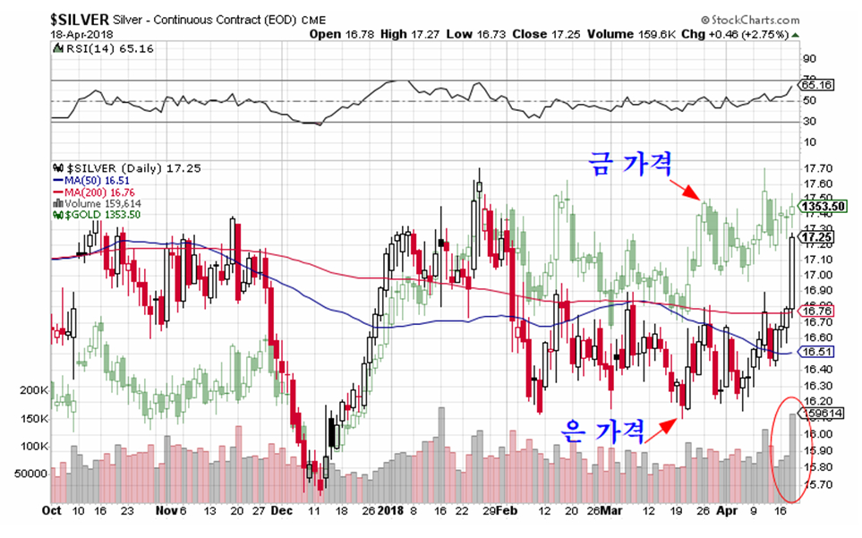 특히 은 가격이 금 가격에 대해 급등함으로써 본격적인 인플레이션 국면의 시작을 예고한다. 은 가격이 금 가격보다 빠른 상승을 하는 것은 인플레이션 국면을 나타낸다.