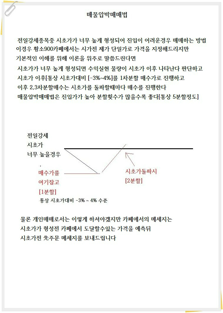 통상 황소900트레이딩전문카페에서 진행하는 매물압박매매법이란 다음과 같습니다.