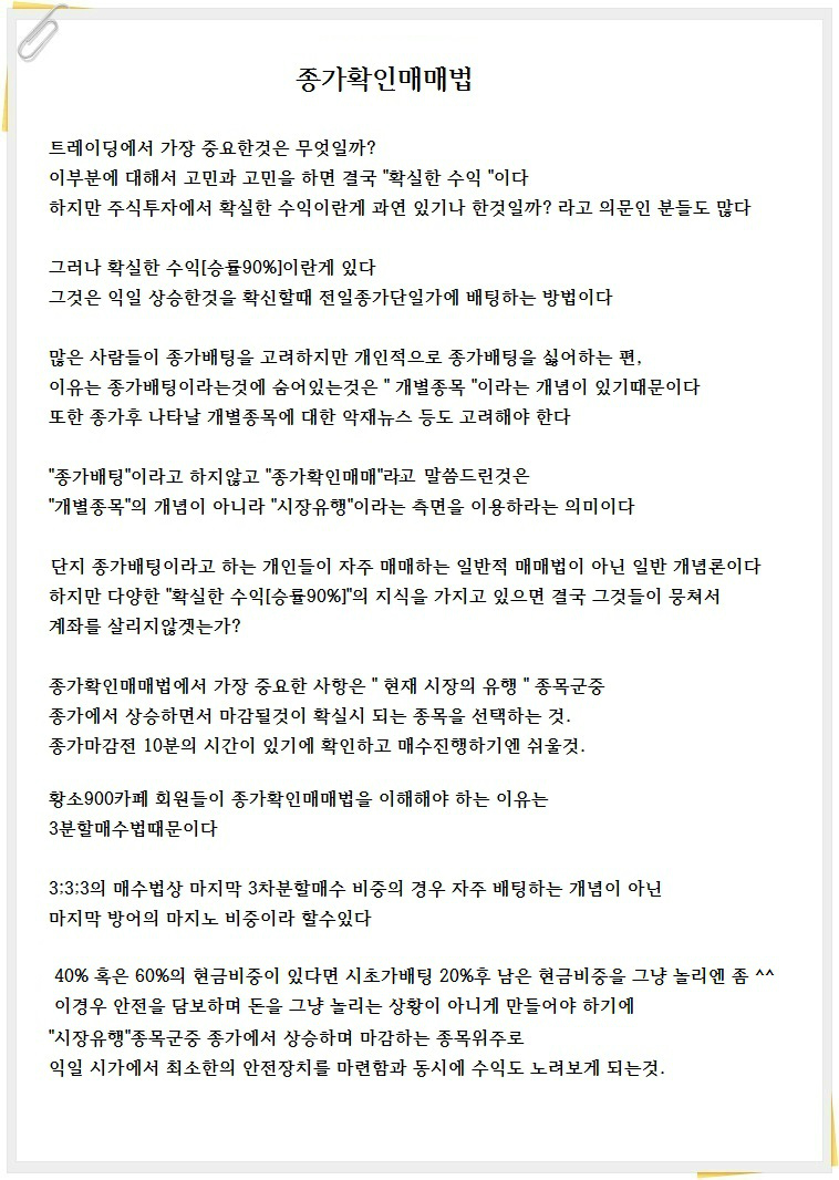 제가 여기서 말씀드리는 종가배팅이란 통상 말하는 종가배팅이 아닙니다