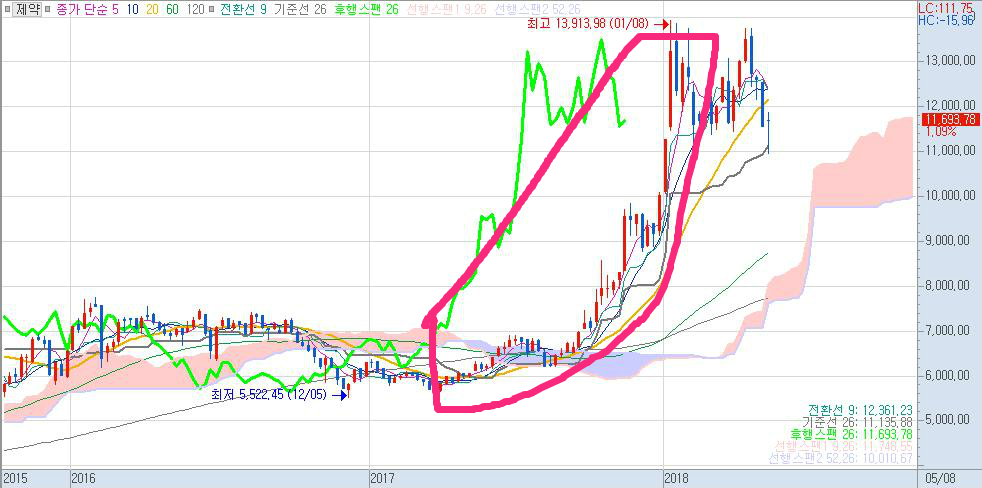 이러한 상승 중에 제약,바이오 종목들은 10배 이상 상승한 종목들이 속출했다.