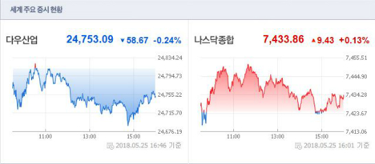 지난 금요일은 북미 회담 취소발언에 의한 지정학적 리스크로 다우가 하락했고
