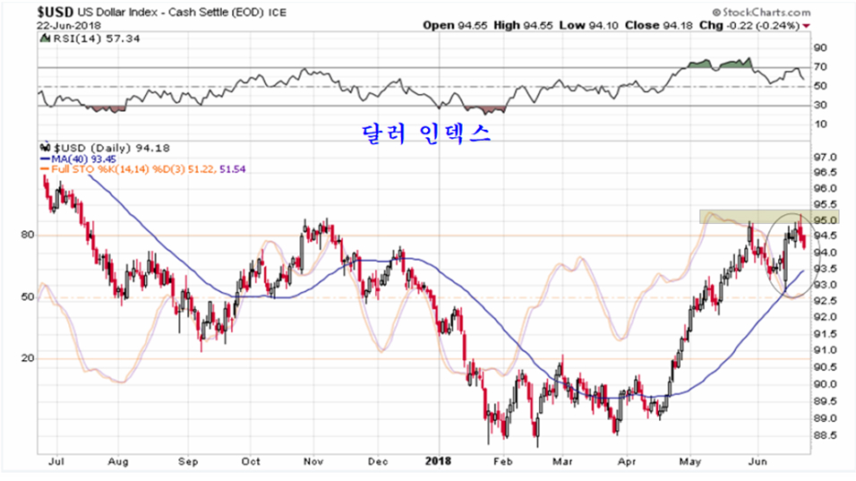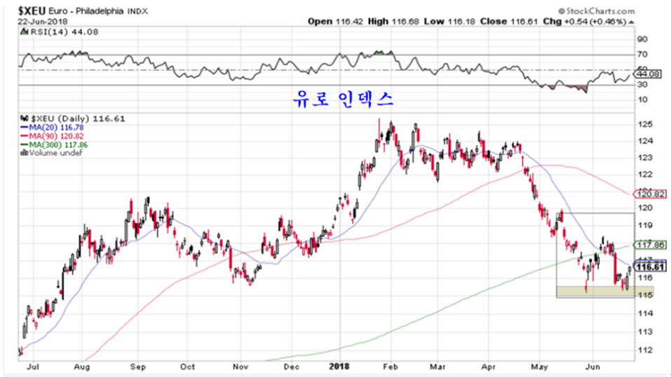 5월 중순 반등이 마무리될 위치에 있었던 달러화는 이탈리아의 정치불안을 핑계 상승이 오버슈팅 된 후 약세로 전환되었으나, 중국의 지표 부진을 이유로 중국증시가 급락하는 과정에서 재차 상승하였지만, 원유가격의 상승과 함께 달러 가치가 하락하고 유로를 포함한 주요 통화가 반등하고 있다.