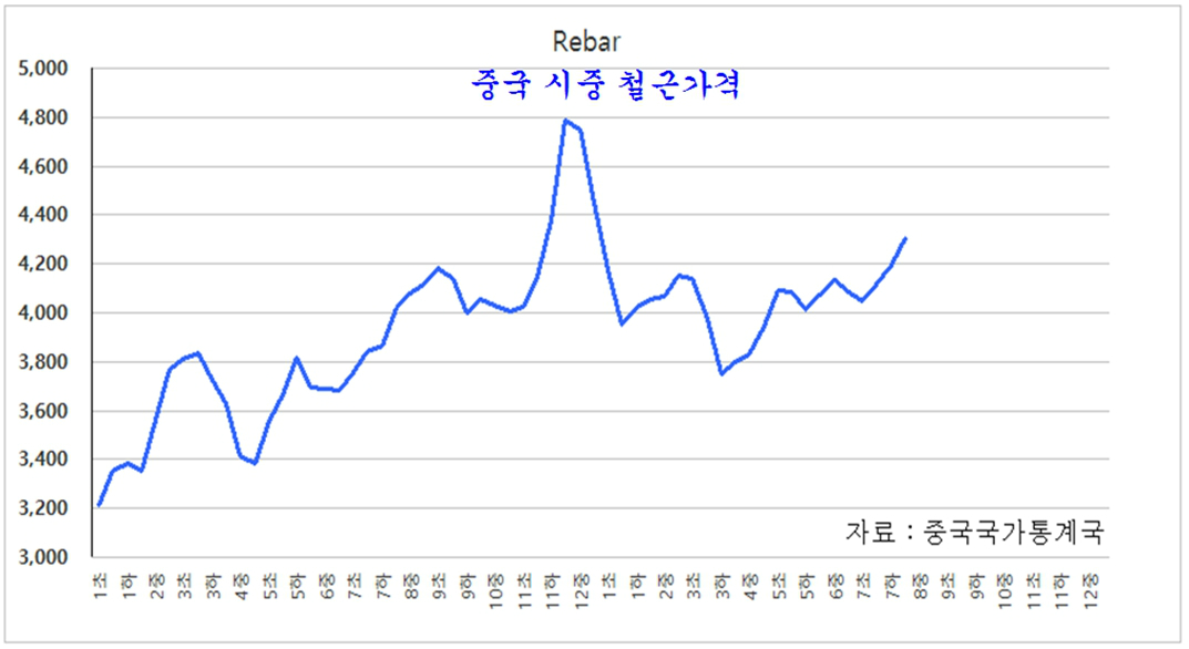 실제, 중국이 지준율을 낮추고 유동성 공급을 늘리면서 중국 주택 건설이 늘고 있고, 그를 따라 철강, 화학 제품의 중국 시중가격이 상승을 시작하고 있다.