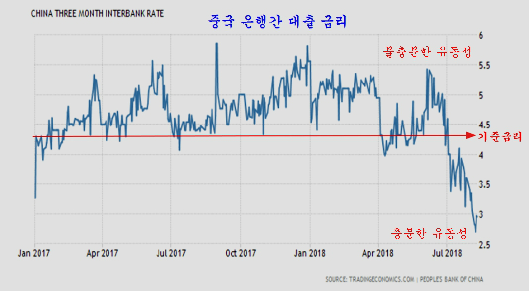 중국은 과도한 기업부채를 줄이기 위해 일부러 시중에 유동성 공급을 줄여 구조조정을 유인해왔다. 그러나 미국과 중국의 무역 갈등이 불거지면서 중국은 7월 부채감축 정책을 유보하고 시중에 충분한 유동성을 공급하고, 재정정책을 적극적으로 실시하여 내수를 부양하는 정책으로 선회하였다.