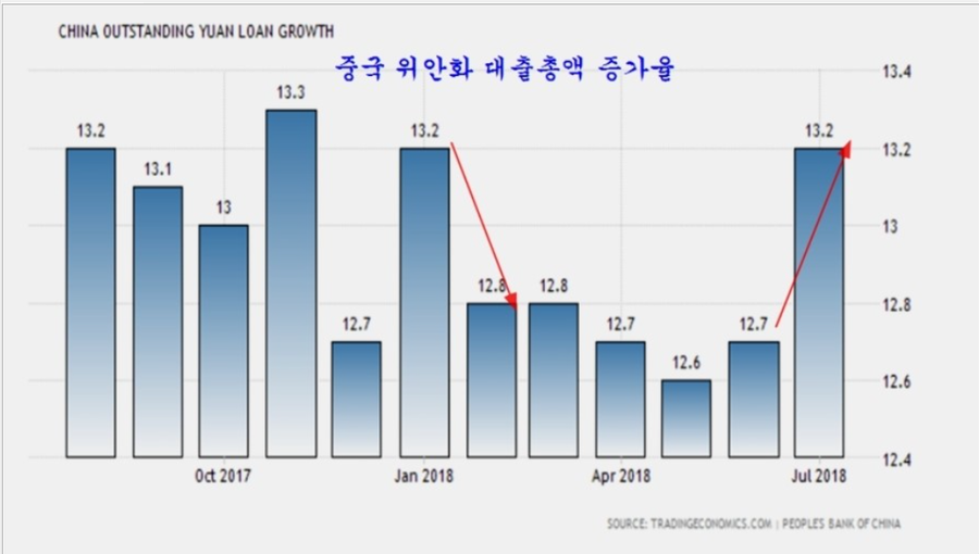 그 결과 7월 은행간 대출금리가 기준금리 아래로 내려오면서 시중 유동성 부족이 개선된 모습을 보이고 있고 이와 함께 위안화 대출 증가율도 크게 호전되며 이전의 증가율을 기록했다.
