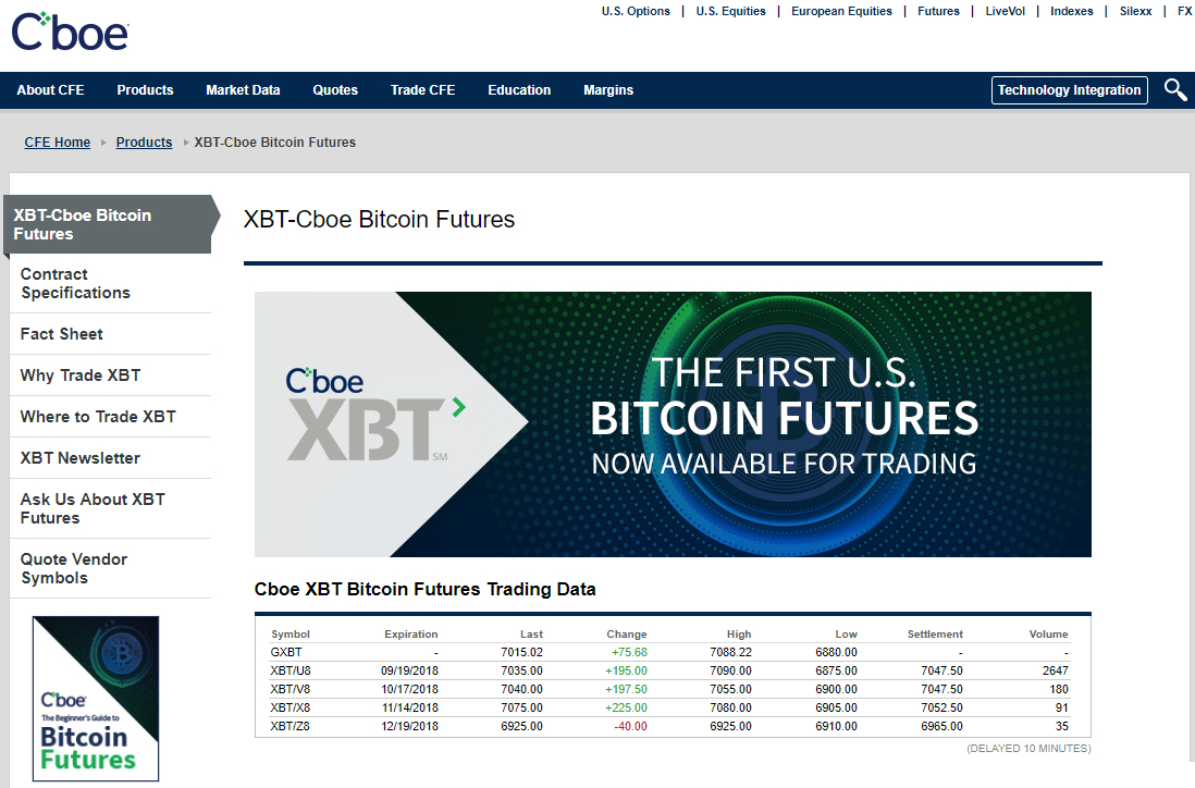 작년 12월 세계 최초로 비트코인 선물을 출시한 시카고옵션거래소(CBOE)는