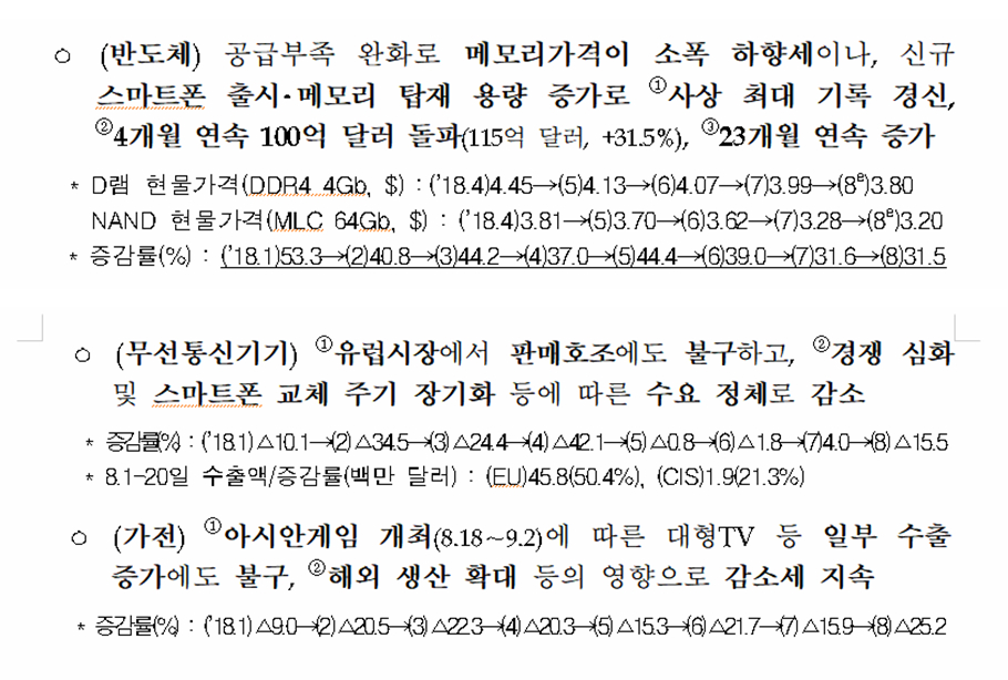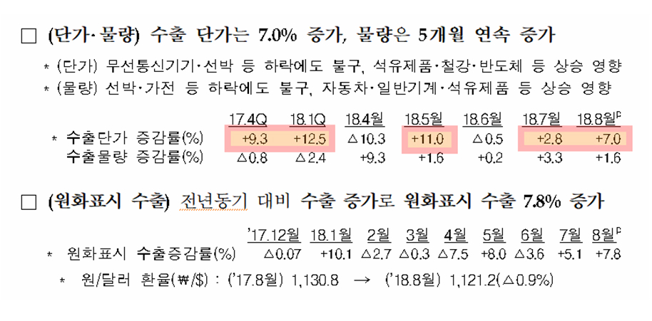 쥬라기: 산업통상산업부가 발표한 8월 수출입 통계에서 수출이 다시 증가하고 있죠.