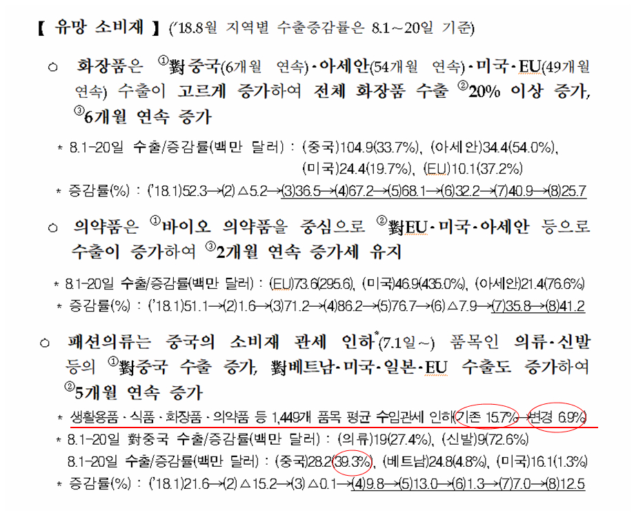 쥬라기: 패션의류도 8월 20일까지 대중국 수출 증가율이 39.3%에 이르고 있어