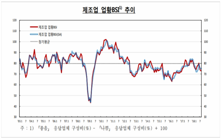 쥬라기: 기업이 체감하는 경기인 기업실사지수도 악화되고 있습니다.