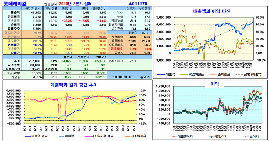 화학업종의 주가는 2010년의 고점보다 크게 낮게 형성이 되어 있으나 화학을 대표하는 업종의 실적은 2010년 보다 매출과 이익이 증가해 있다. 또한 세계 경제의 성장과 함께 매출액과 이익이 성장 추세를 보이고 있다. 또한 부채비율, 현금흐름, 안정적인 설비투자에 따른 성장 잠재력 확충 등 어느 면에서도 세계적인 경쟁력을 갖추고 있다.