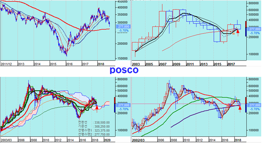 그런 하락 변동성에도 불구하고 지금은 장기 추세 구도상 중요한 전환점 근처이고 또한 저가 매수 기회이므로 차분히 지분을 늘려가고, 하락에 위축되지 말고 차분히 옵션 만기가 지나고 중국 증시가 호전되는 수급과 함께 상승하기를 기다리는 전략이 필요하다.
