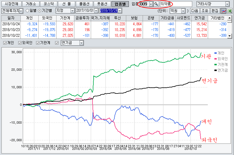 그럼에도 불구하고 우량한 경기주를 팔아 하락시키면서 제약주를 사모으는데 올인하는 연기금과 기관들의 의중을 알기 어렵다.