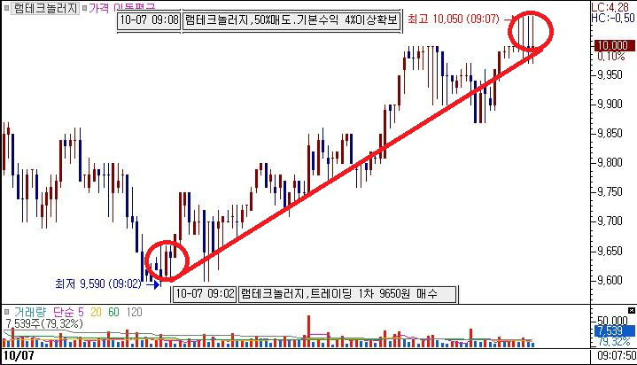 황소900cafe " 하루 한 종목project " 10,07일 매매 종목 " 램테크놀러지 "