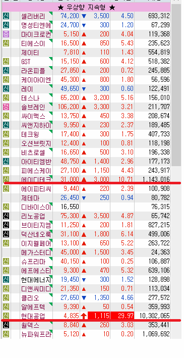 전일 추천주 현대공업 상한가 강하게 안착!!