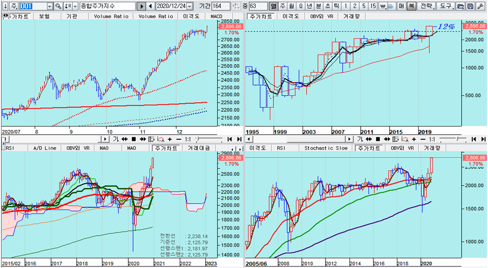 따라서 연말과 연초의 전략은 2020년 과도하게 상승을 해 이격 과열 상태인 기업들의 주식을 차익 실현하여 비중을 줄이고 현금을 늘리는 한편, 2020년 하반기 조정을 받거나 덜 올라 이격이 작은 우량 저평가 기업을 중심으로 포트폴리오를 바꾸는 것이 필요하다.