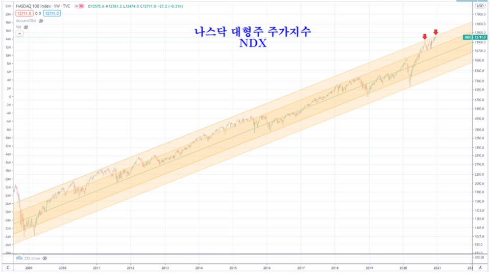 한편, 지난 10년 상승이 이어졌던 미국의 첨단 기술주 중심의 나스닥 대형주지수는 올 들어 45.55%라는 기록적인 상승률을 기록하고 있다. 이런 상승이 기업의 실적 성장과 함께 하지 않는다는 점에서 유동성에 기인한 주가 과속을 나타낸다.