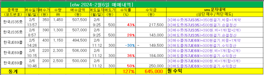6일(화) elw 매매에서는 당일 초단타로 콜·풋을 매매해 127% 수익을 챙겼습니다.